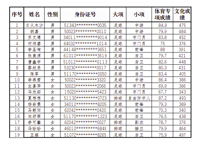 重庆工商大学2025年高水平运动队拟录取考生名单公示