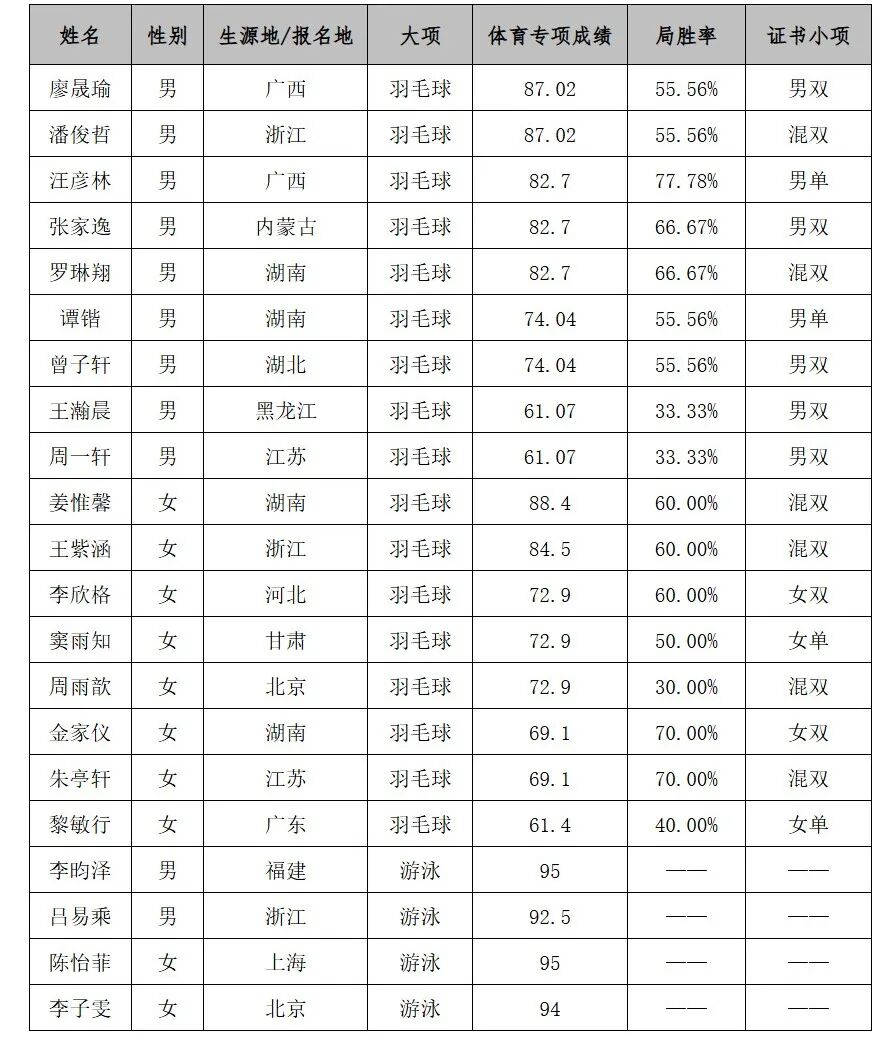1.按照教育部有关要求,2025年高水平运动队入围考生名单将上报教育部,并在教育部“阳光高考”平台集中公示,最终名单以“阳光高考”平台审核公布为准。