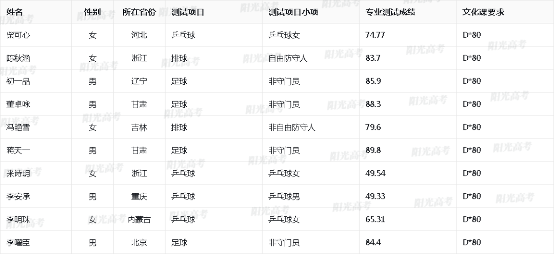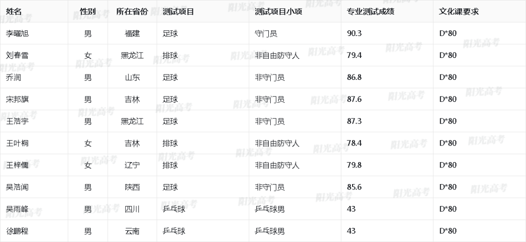 山东师范大学2025年高水平运动队入围名单