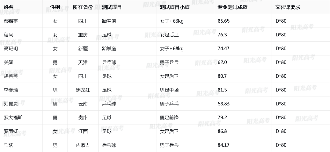 西华大学2025年高水平运动队入围名单