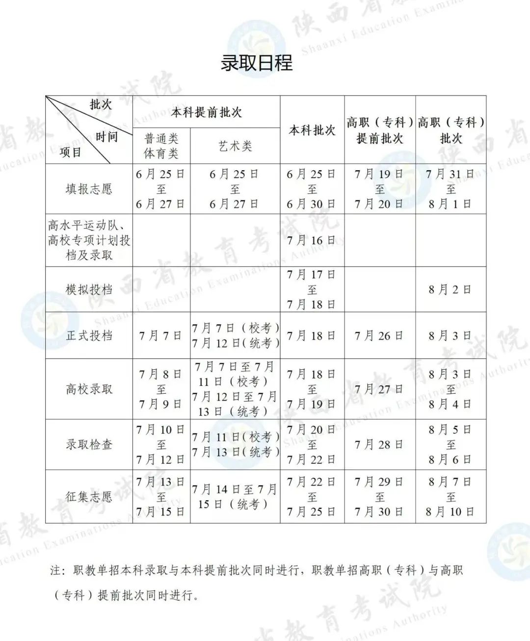 2025年陕西省高考录取日程