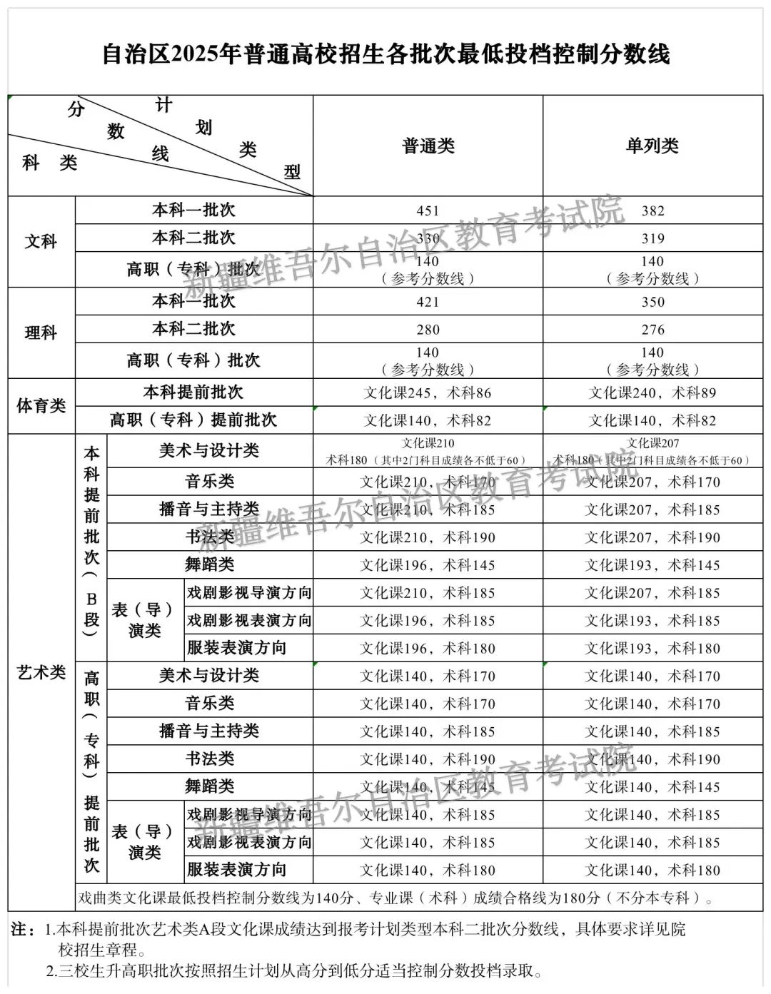 新疆2025年普通高校招生各批次最低投档控制分数线确定