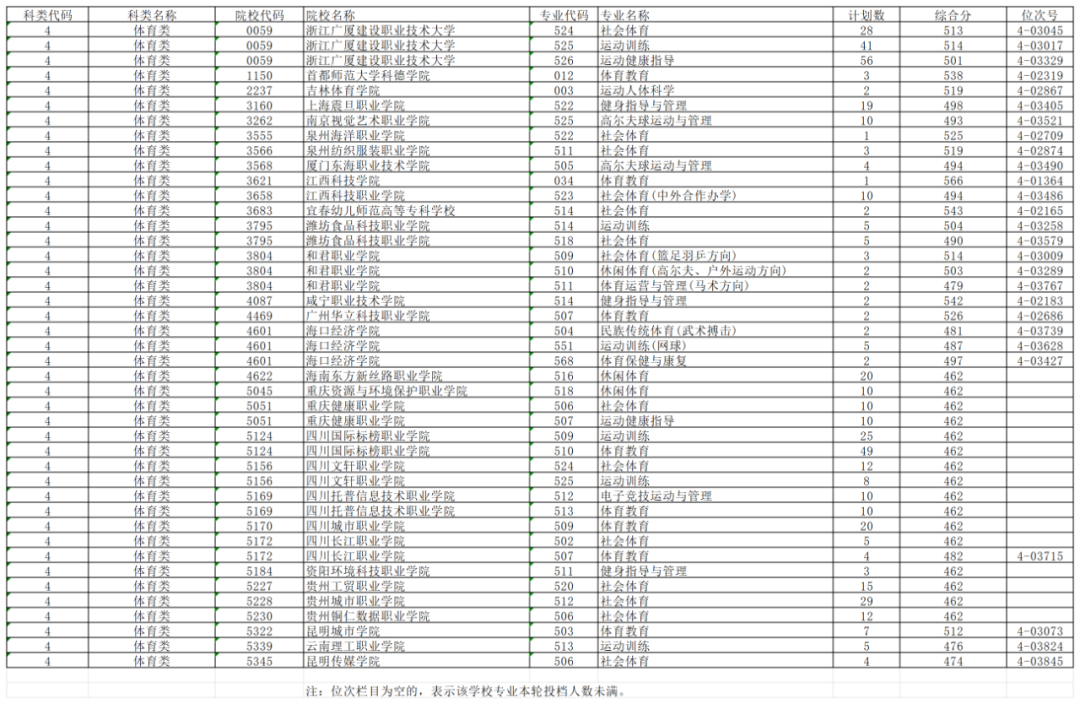浙江省2025年普通高校招生体育类第二段平行投档分数线