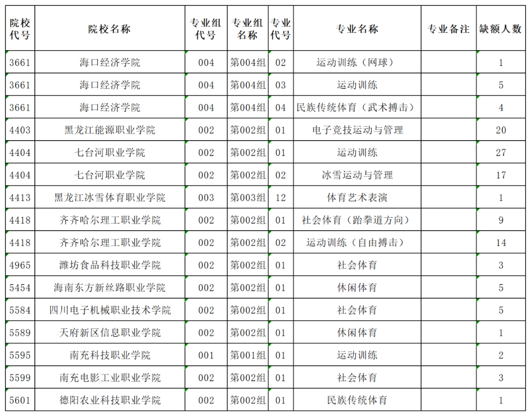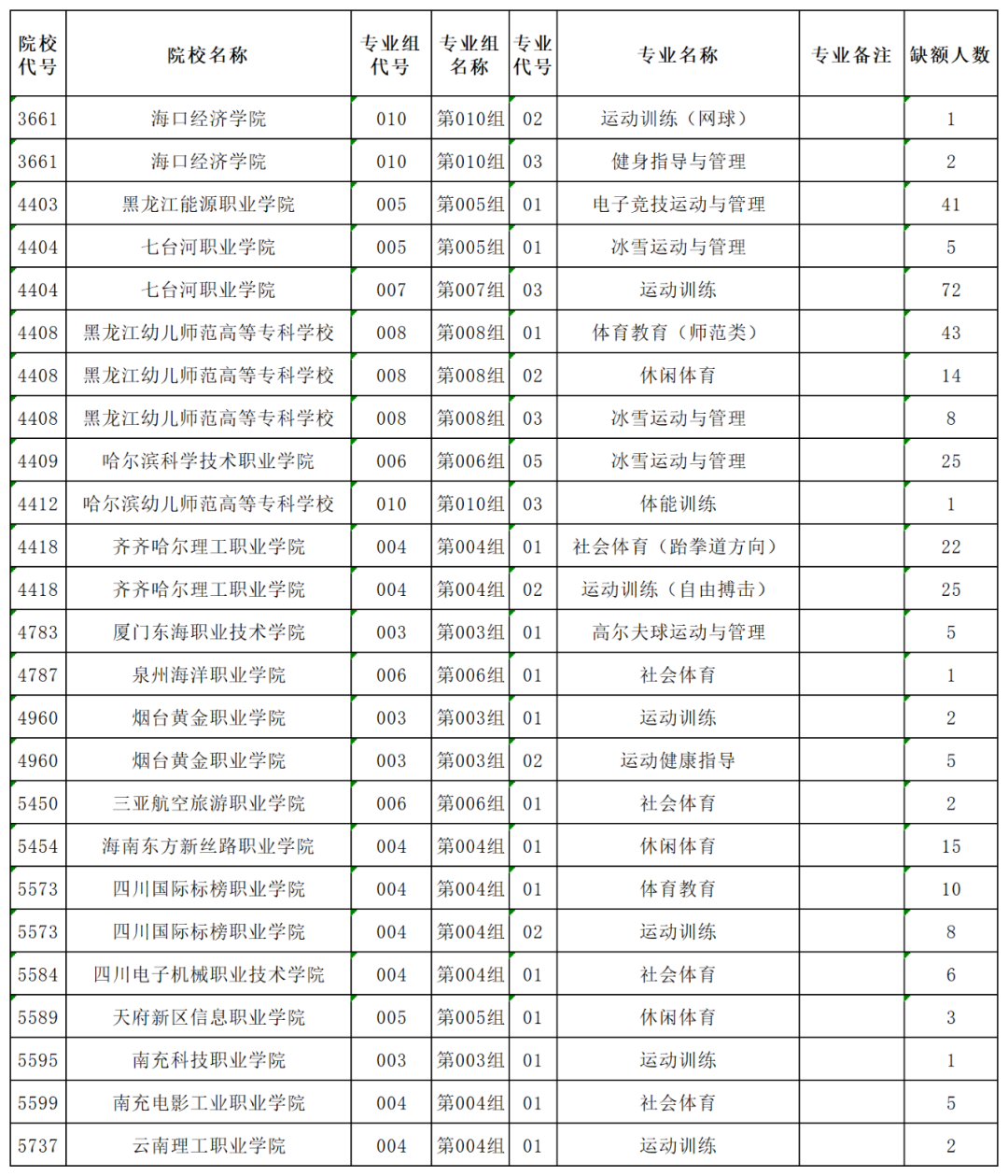 2025年普通高校招生体育类高职(专科)批征集志愿缺额计划(物理类)