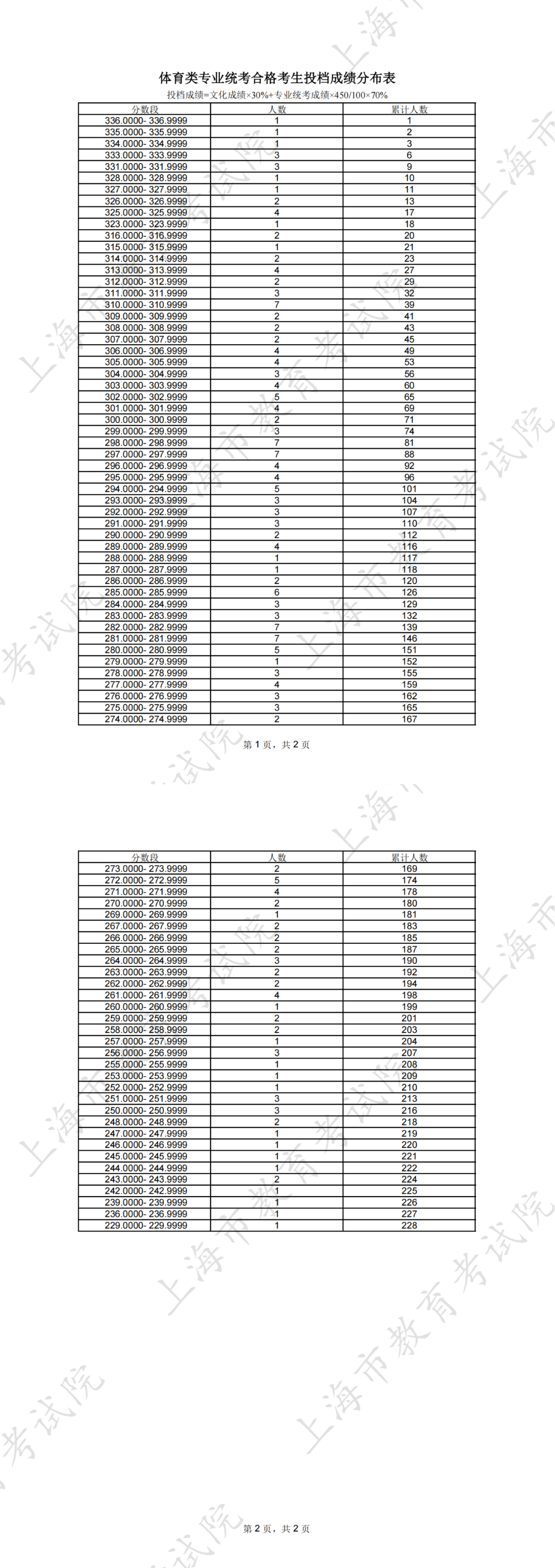 上海市2025年普通高校招生体育类专科阶段考生成绩分布表(一分一段)