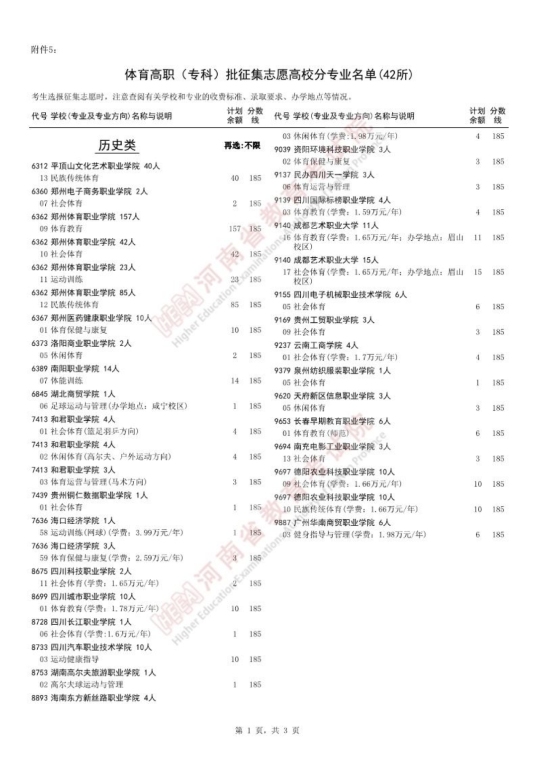 四、体育高职(专科)批征集志愿实行平行志愿,“1个专业+1个院校”为1个志愿填报单位,不设是否同意专业调剂选项,考生可填报1-48个志愿。考生高考文化成绩和体育专业省级统考成绩均须达到我省体育高职(专科)批录取控制分数线。