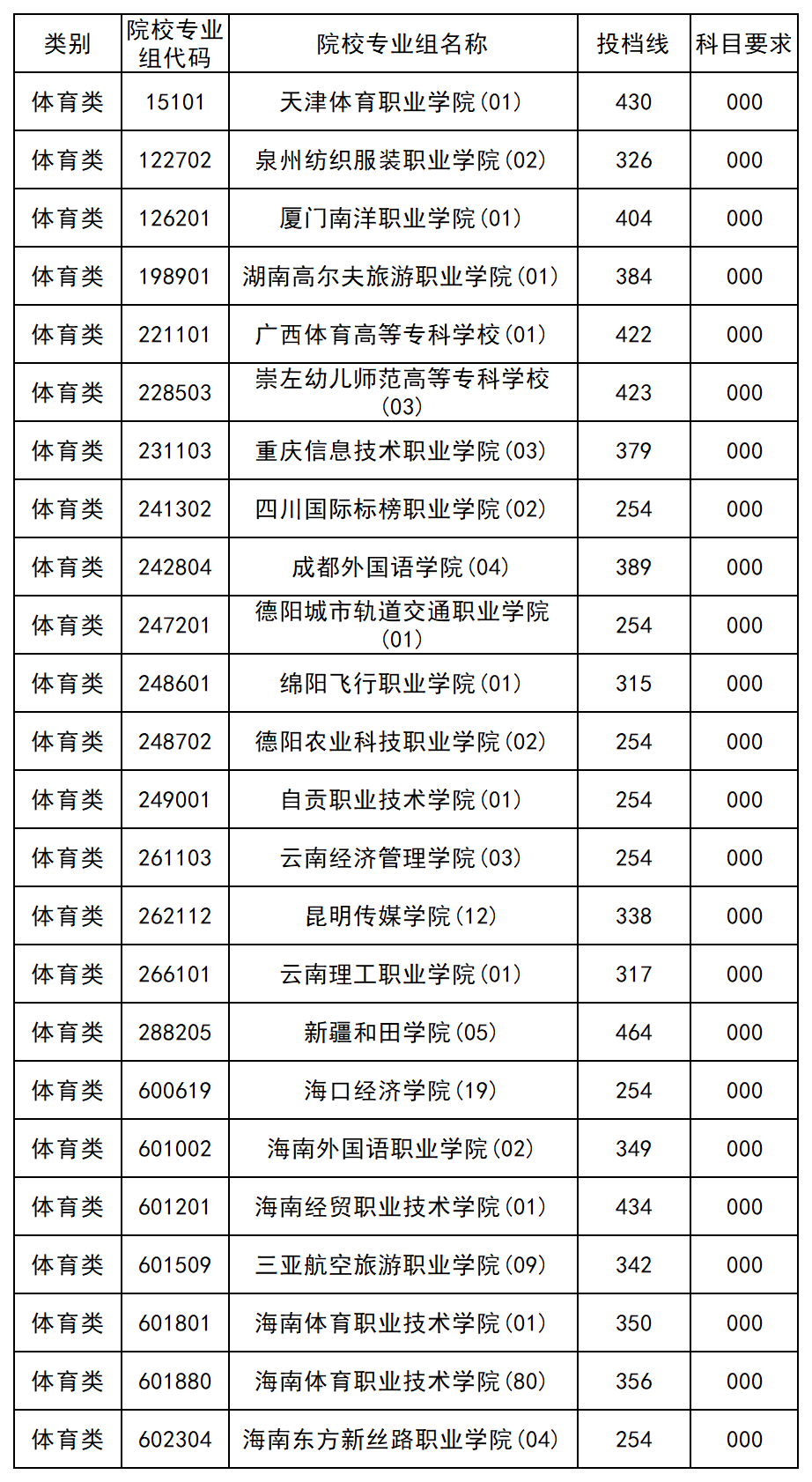 2025年海南省普通高校招生录取高职(专科)提前批普通类、体育类平行志愿院校专业组投档分数线