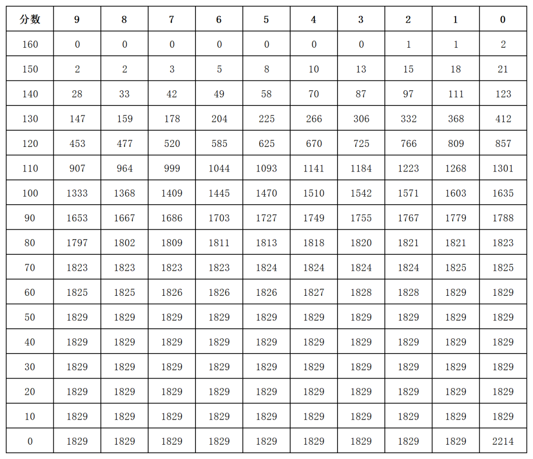 吉林:2025年普通高校招生考试体育类综合成绩一分段表