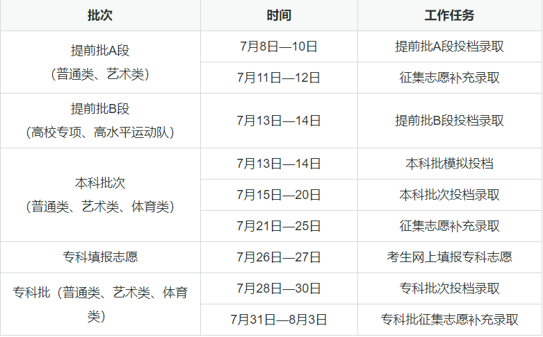 我省2025年普通高考各批次录取时间已初步确定。具体安排如下。