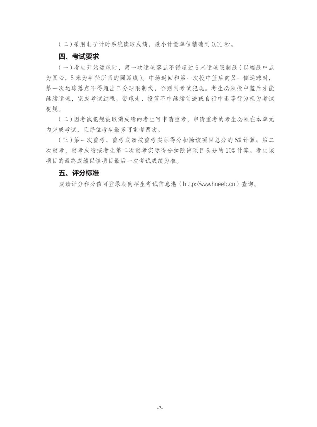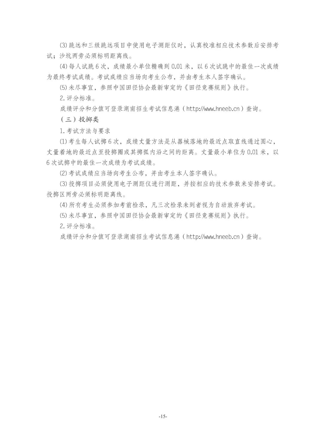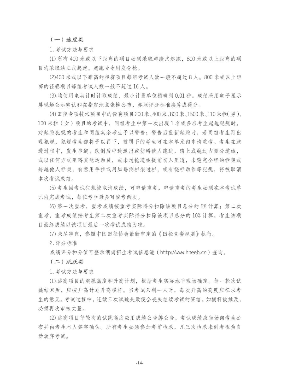 关于印发湖南省普通高校招生体育类专业统一考试细则与评分标准(2026版)的通知