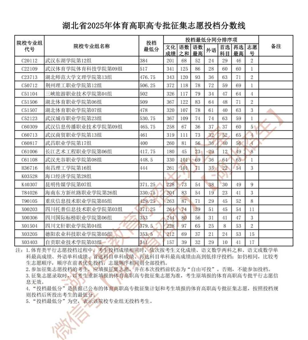 湖北省2025年体育高职高专征集志愿投档分数线发布