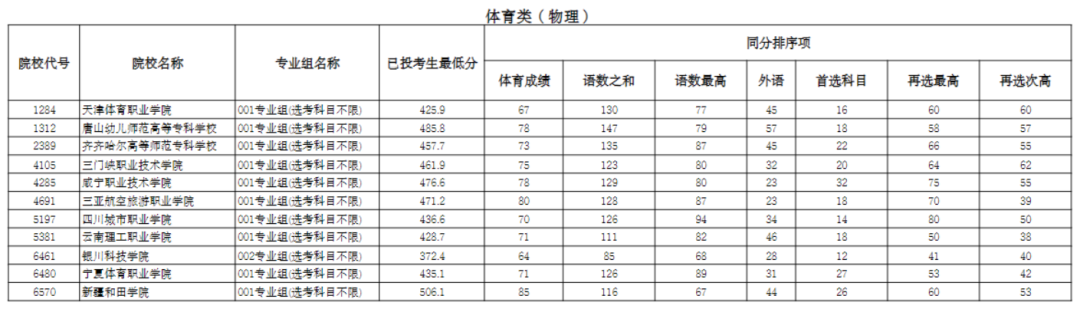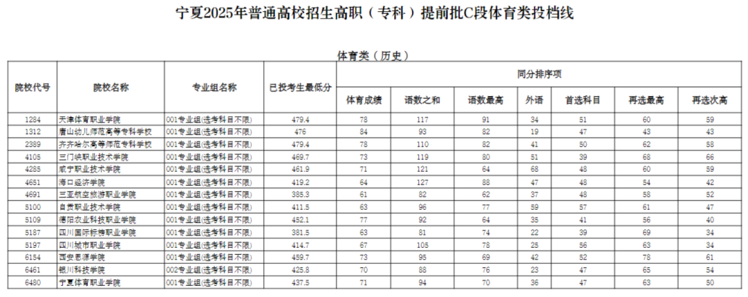 宁夏2025年普通高校招生高职(专科)提前批C段体育类投档线